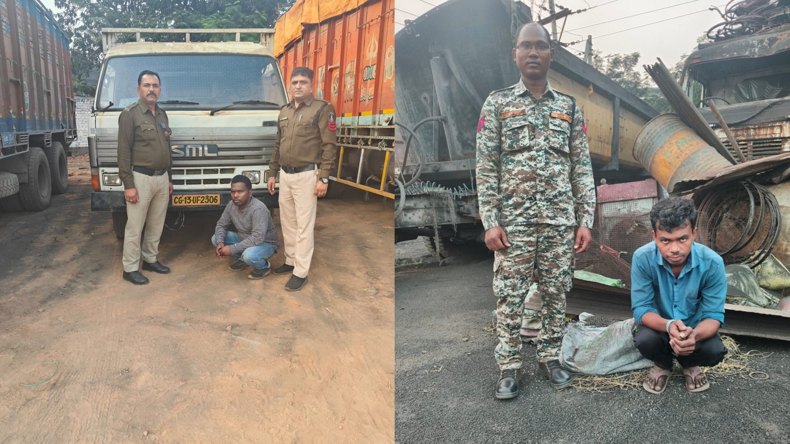 रायगढ़ । एसपी दिव्यांग कुमार पटेल के निर्देशन में संपत्ति संबंधी अपराधों पर अंकुश लगाने के तहत रायगढ़ जिले में अवैध कबाड़ के परिवहन और भंडारण पर कार्रवाई जारी है। इसी क्रम में 27 दिसंबर 2024 को पूंजीपथरा पुलिस ने दो अलग-अलग कार्रवाइयों में अवैध कबाड़ का परिवहन कर रहे एक माजदा वाहन और डंप किए गए लोहे के कबाड़ को जब्त किया।