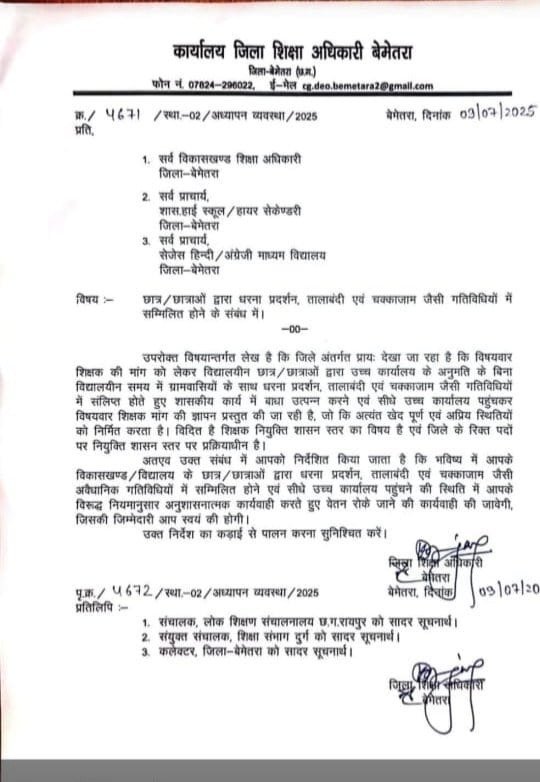 प्राचार्यों पर सख्त हुआ शिक्षा विभाग.. सड़क पर उतरे स्टूडेंट्स तो नपेंगे संस्था प्रमुख, वेतन भी रुकेगा..