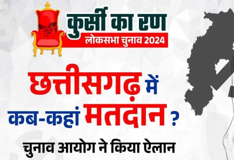 रायपुर. भारत निर्वाचन आयोग ने लोकसभा चुनाव 2024 के लिए तारीखों का ऐलान कर दिया है. जिसके मुताबिक छत्तीसगढ़ में 3 चरण में चुनाव होंगे. वहीं चुनाव के नतीजे 4 जून को आएंगे. चुनाव आयोग के मुताबिक पहले चरण का चुनाव 19 अप्रैल, दूसरे चरण का चुनाव 26 अप्रैल और तीसरे चरण का चुनाव 07 मई को होंगे.