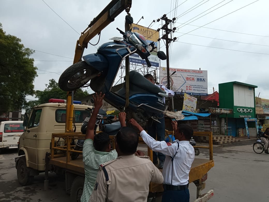यातायात पुलिस ने सड़क पर अस्त व्यस्त खड़े वाहनों बाइक क्रेन से उठवाकर लायी थाने, प्रत्येक दुपहिया पर ₹700-₹700 का चालान…
